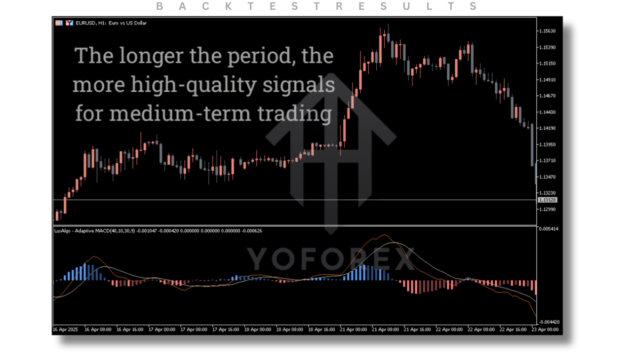 Yes. Its visual representation is much easier to interpret than classic MACD. The histogram and crossovers give straightforward signals, and the adaptive feature helps prevent mistakes caused by market noise.