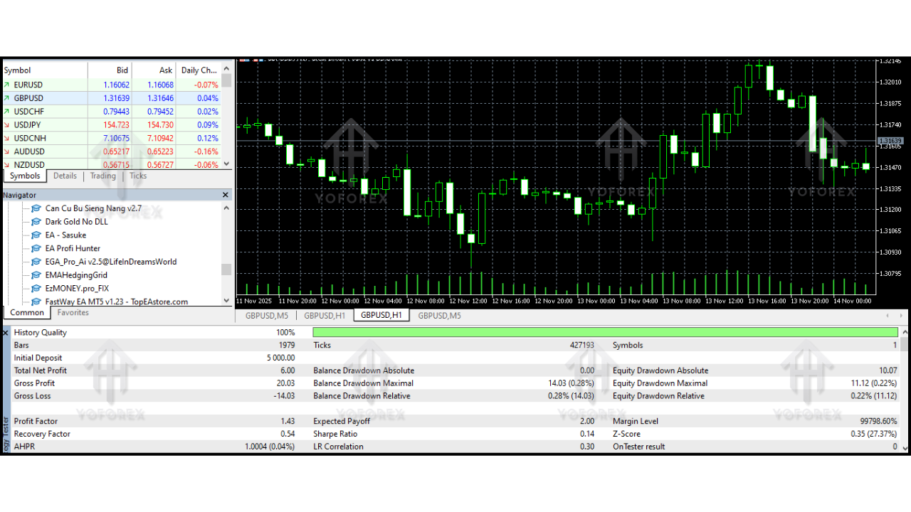EGA Pro Ai EA V2.50 MT5 is a smart, efficient, AI-powered Expert Advisor built specifically to trade GBPUSD on the M5 timeframe. It’s designed for traders who want a clean, rule-based system without martingale, without stress, and without unpredictable behavior.