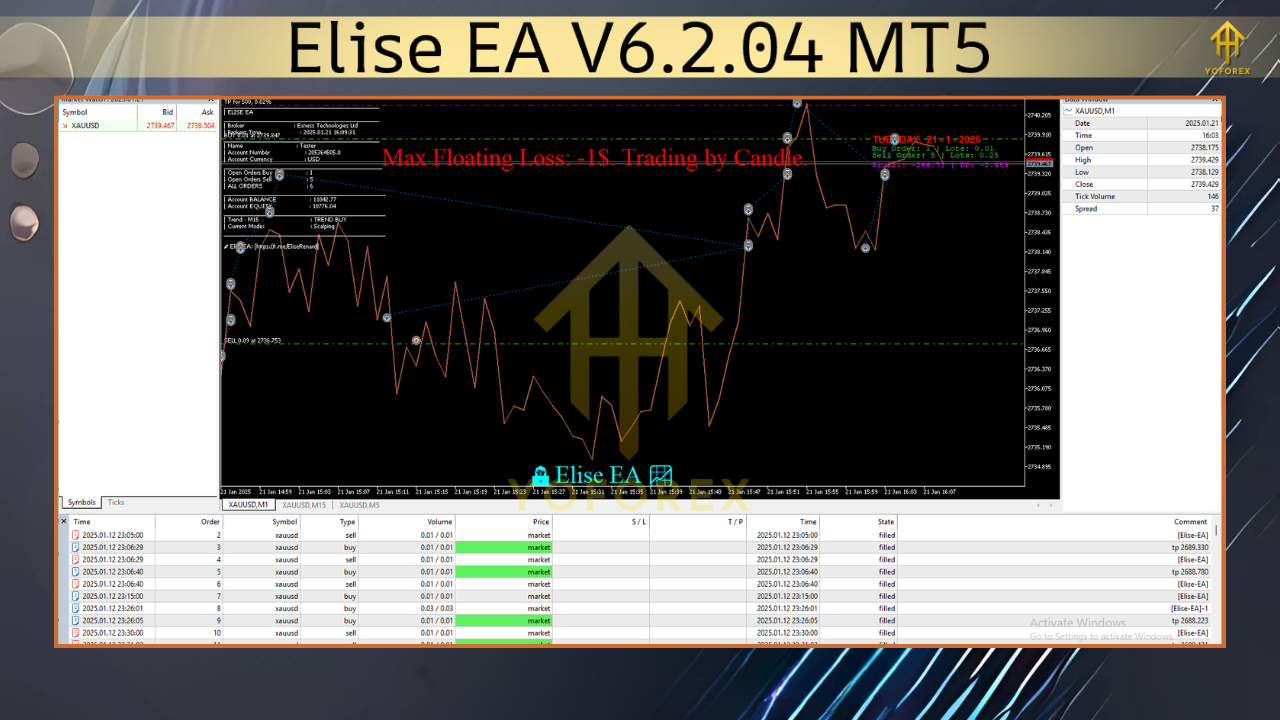 If you’re done with bots that spray orders and pray, Elise EA V6.2.04 for MT5 is your calmer option. It waits for trend alignment, checks volatility with ATR, and demands a clean structure confirmation before entering. When conditions are messy, Elise simply… skips. No martingale, no grid “recovery,” no drama—just rules you can audit and tweak.