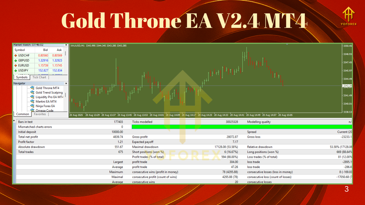 Download Gold Throne EA V2.4 MT4 now from YoForexEA.com and experience the precision of AI-backed trading.