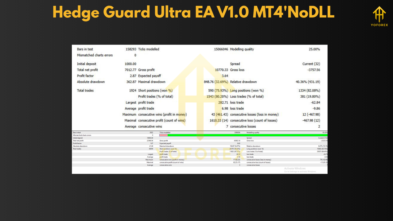 The Hedge Guard Ultra EA V1.0 MT4 offers a sophisticated solution for traders seeking to automate their trading while maintaining control over risk. It's an ATR-based strategy, combined with smart hedging and robust risk management features, that provides a balanced approach to forex trading. Whether you're a beginner looking to enter the world of automated trading or an experienced trader seeking a reliable tool to enhance your trading strategy, the Hedge Guard Ultra EA presents a compelling option.