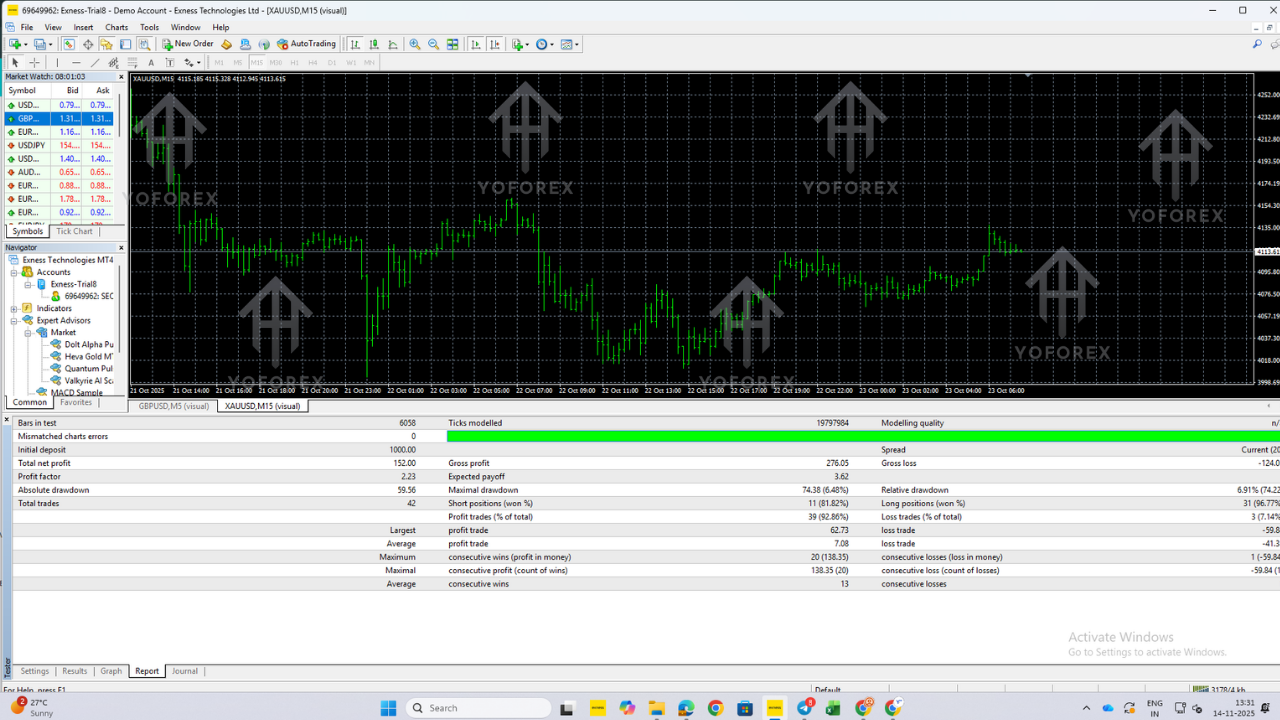 The EA primarily runs on M15 or M30 timeframe and works only with XAUUSD (Gold). Why only one pair? Coz the team wanted to optimize every inch of the logic for one market instead of spreading it thin across 10 pairs. Gold has unique behavior—momentum bursts, liquidity hunts, and fake-outs. And Heva Gold is tailored to that.