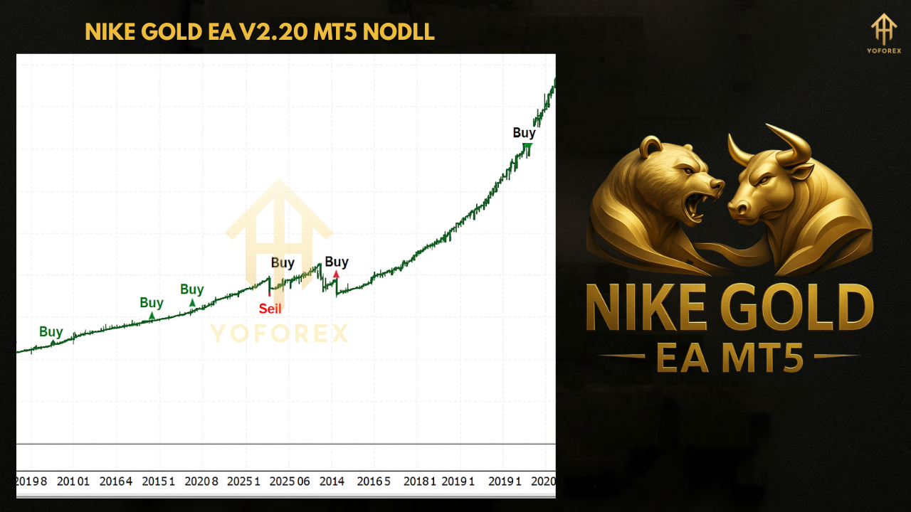 NIKE GOLD EA V2.20 is the latest iteration of the popular gold-trading robot from YoForex. It’s a dedicated MT5 expert advisor that:
