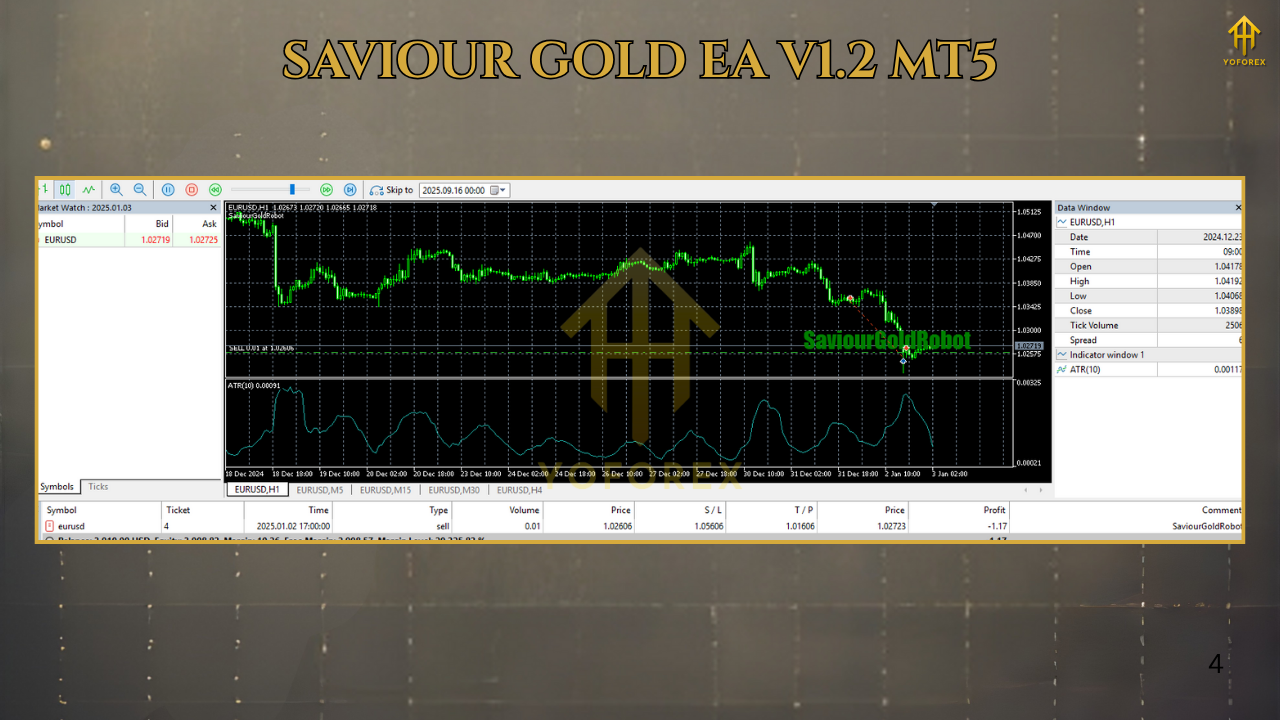Tired of chasing gold entries, second-guessing exits, and watching price spike against you the moment you blink? You’re not alone. XAUUSD is a beast—volatile, emotional, and unforgiving if you’re late by even a few seconds. Saviour Gold EA V1.2 (MT5) aims to fix that by automating the heavy lifting: spotting high-probability zones, timing entries with discipline, and managing risk with consistency. The promise isn’t magic; it’s method. With version 1.2, the EA focuses on tighter risk controls, cleaner execution on MT5, and smarter filters so you can spend less time glued to charts and more time letting the algorithm work for you.