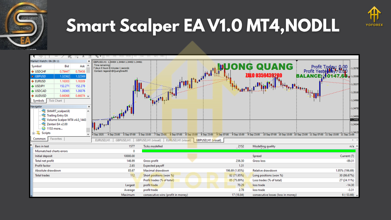 Smart Scalper EA V1.0 is an automated forex trading robot built for the MetaTrader 4 (MT4) platform. It was engineered to identify short-term price fluctuations in highly liquid currency pairs and execute trades within seconds.