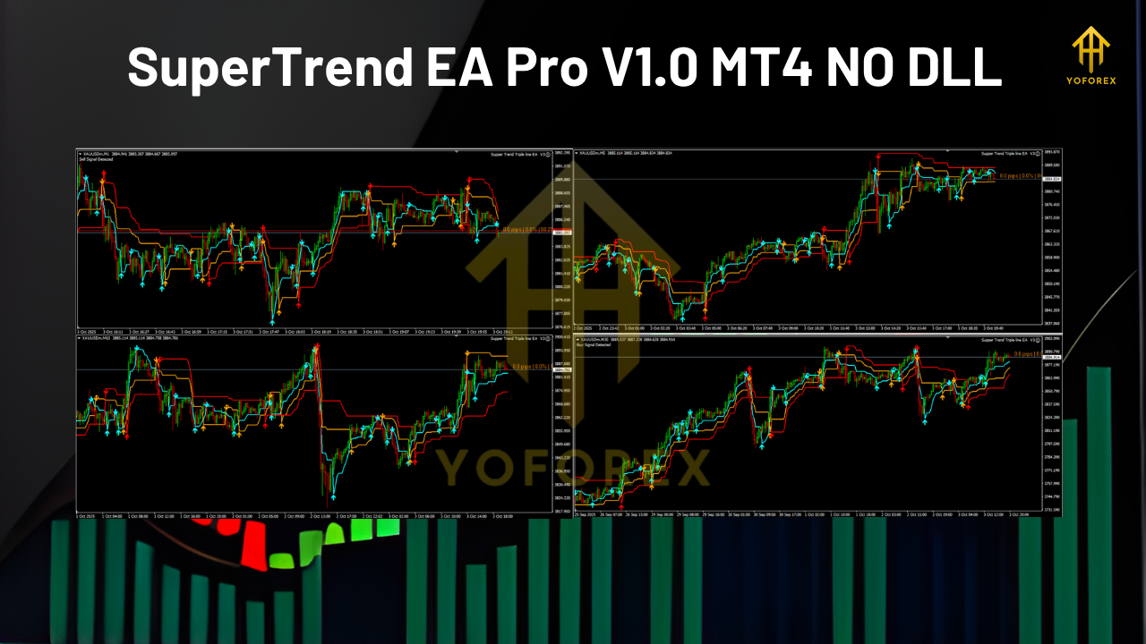 SuperTrend EA Pro is a MetaTrader 4 Expert Advisor that automates trend-based trading decisions. At its core, it uses the SuperTrend indicator — a dynamic tool based on price and volatility — to determine market direction and filter entries.