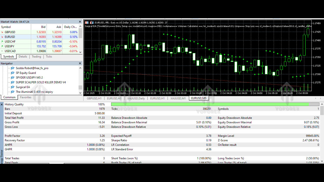 Surgical EA V2.0 MT5 lives up to its name — it trades with almost surgical accuracy. The combination of low-latency scalping, clean risk management, and hybrid swing logic makes it one of the more reliable automation choices for 2025. It doesn’t promise unrealistic returns, but it delivers consistent, low-risk performance when used correctly.