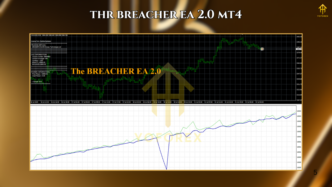 The Breacher EA V2.0 is a fully automated MetaTrader 4 Expert Advisor that specializes in trading price breakouts. It identifies periods of low volatility (“compression zones”) and waits for a decisive candle close beyond a structural boundary — then rides the follow-through with intelligent risk and trade management.