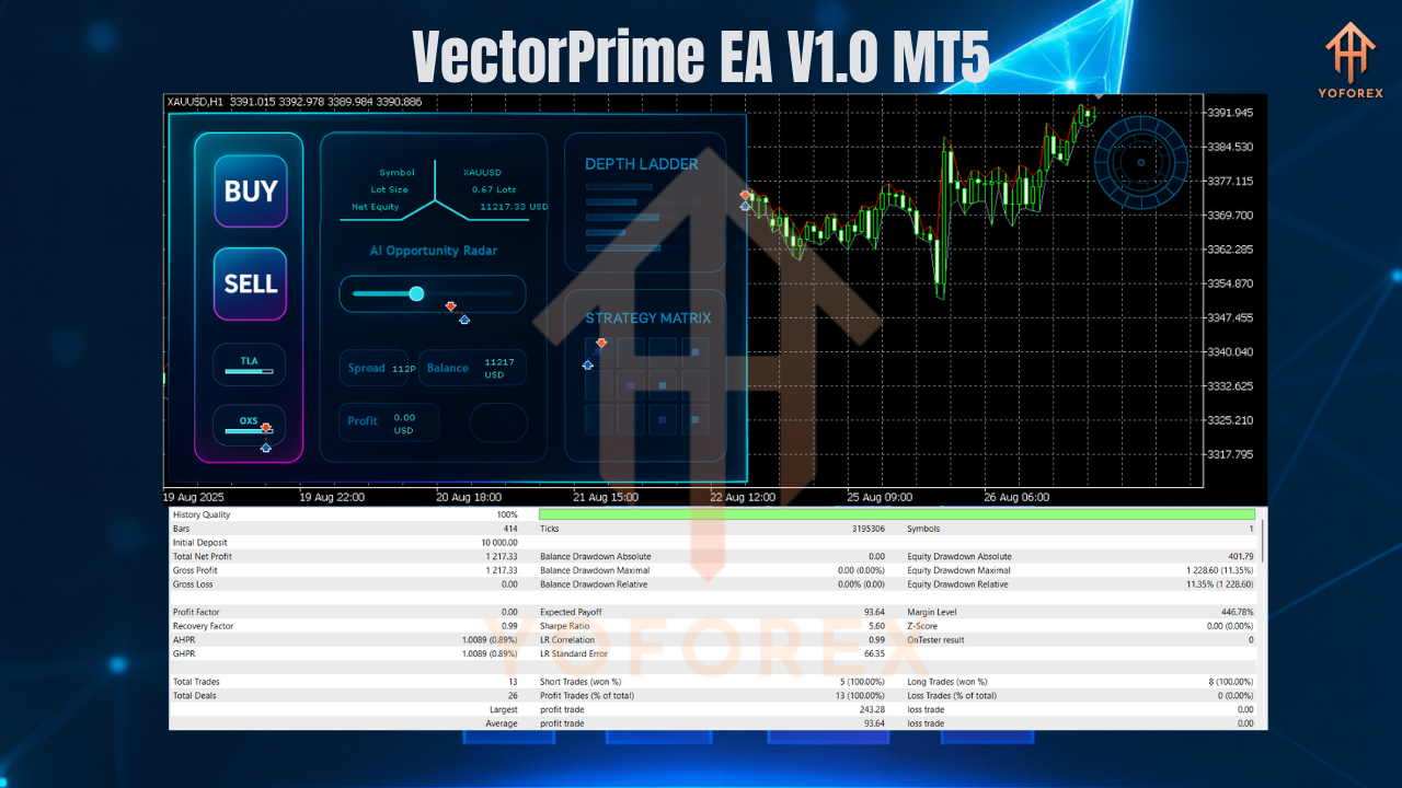VectorPrime is a precision-driven MT5 expert advisor that avoids over-complication. It does not rely on risky systems, does not need news feeds, and trades independently on a single instrument.
