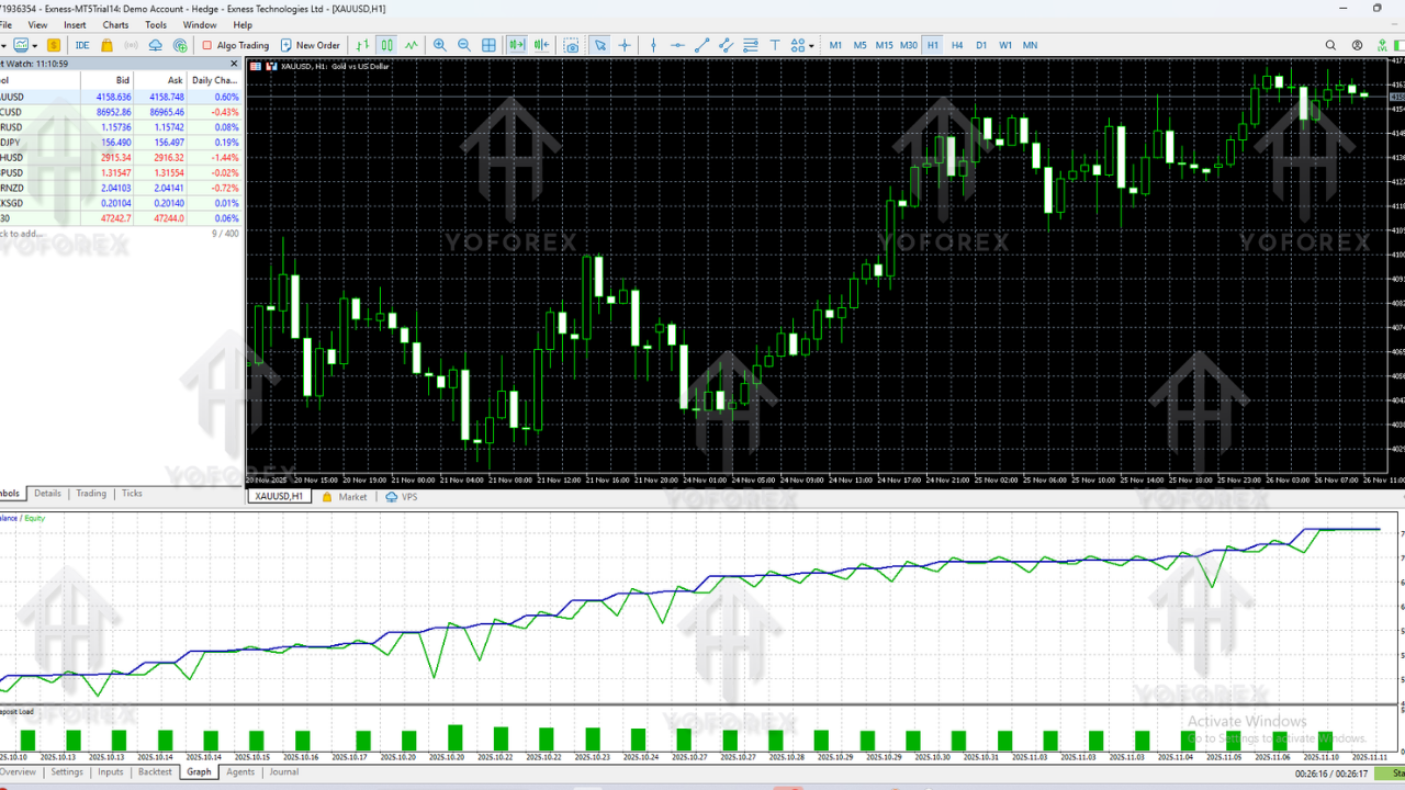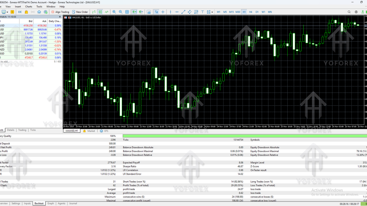 The equity curve remains smooth, as the EA avoids unnecessary trades and waits for clean setups. It performs extremely well in trending markets and moderately during ranging phases.