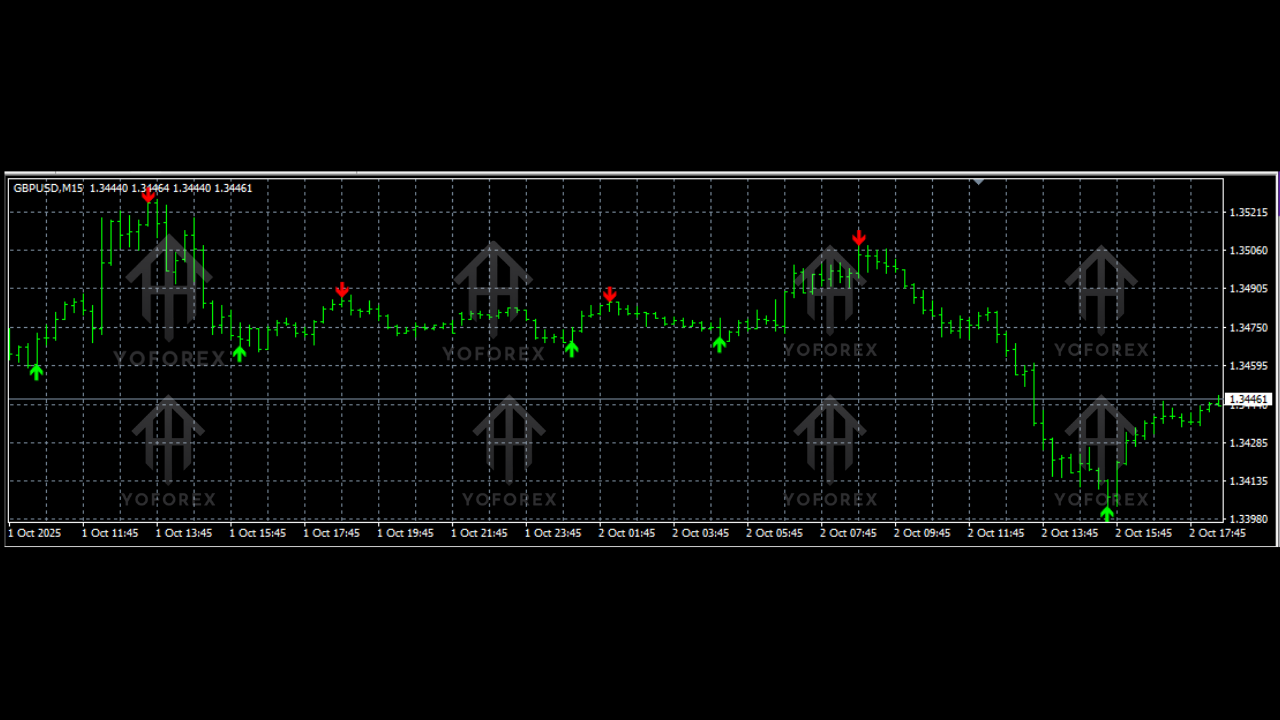 Imagine EURUSD forming lower lows and lower highs. Suddenly, the indicator prints a bullish arrow at a major swing low.