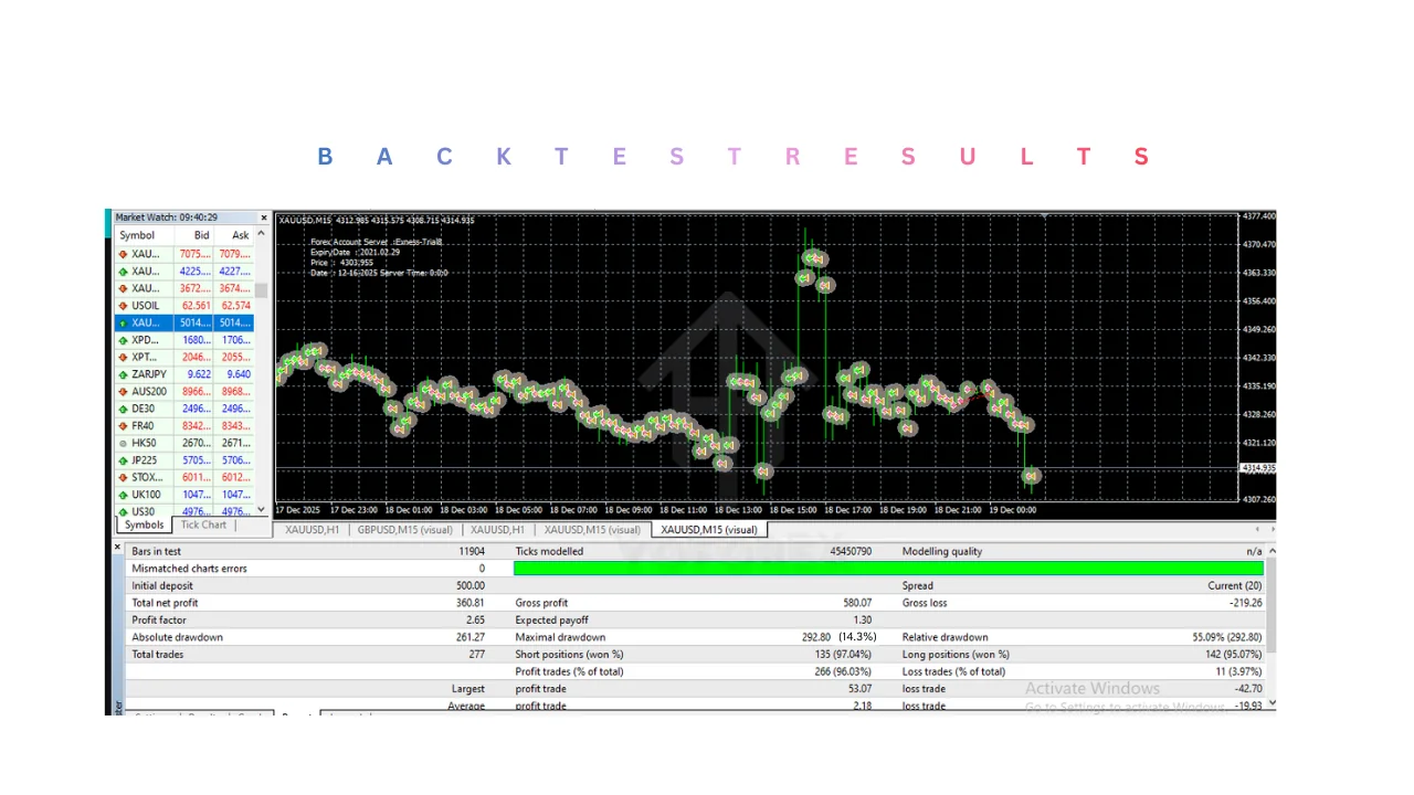 - Parameter Polish: Adjust Stop Loss to 50 pips, Take Profit to 100, balancing the bullish with the bearish.