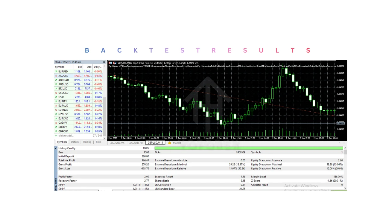 What sets Pip Hunter EA MT5 apart in the crowded EA marketplace? Its architecture is built on MT5's robust backtesting engine, allowing users to simulate years of data in minutes, revealing win rates often hovering around 65-75% in optimized conditions. Intermediate traders appreciate the customizable parameters: set your risk per trade from 1% to 5%, tweak entry thresholds for scalping or swing styles, and even integrate news filters to sidestep volatility spikes from Fed announcements or Brexit echoes. Real-world application shines in ranging markets, where it avoids overtrading by enforcing a maximum of three open positions, preserving capital like a miser guarding his gold.