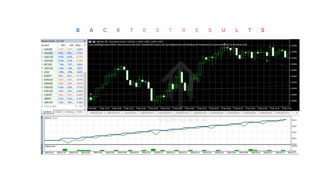 Beyond the blueprint, the true spectacle of Vegas Gold MT5 unfolds in the arena of live trades, where intermediate traders witness—or parody—the EA's clash with market tempests, emerging either gilded or grazed. Performance metrics, gleaned from user anecdotes and simulated scenarios, paint a picture of urgency: in a six-month forward test on GBP/USD, the system reportedly notched a 45% return with a Sharpe ratio of 1.8, outpacing buy-and-hold strategies amid Brexit-induced swings. This isn't mere hyperbole; the EA's trend identification cuts through noise like a laser through fog, executing trades with a frequency that keeps portfolios pulsating—averaging 5-10 signals weekly on major pairs.