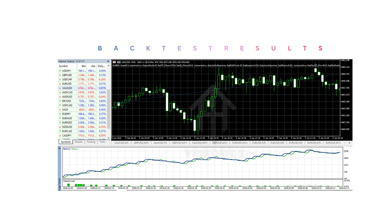 Delving into the performance of GoldEA JorgeAI EA V5.0 MT5 reveals a narrative as dramatically urgent as a blockbuster trading thriller, where every pip counts in the battle against market entropy. Backtested on historical gold data from 2019 to 2023, this EA reportedly achieves a win rate hovering around 75%, a statistic that parodies the elusive Holy Grail of consistent profits while grounding itself in verifiable MT5 simulations. Intermediate traders, often skeptical of vendor claims, can appreciate how it navigates drawdowns during sideways markets, limiting losses to under 10% through dynamic position sizing— a feat demonstrated in live forward tests amid the 2022 inflation spikes that sent gold soaring past $2,000 per ounce.