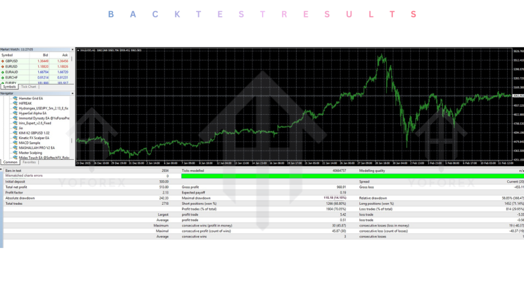- Risk Management: Built-in stop-loss per grid and overall account protection at 20% drawdown.