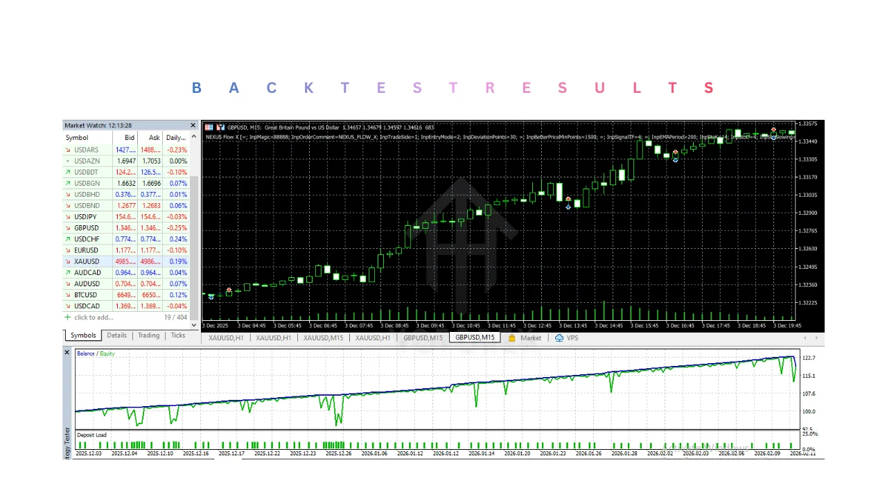 Imagine the relief of waking to green balances, not red-eyed regrets. NEXUS Flow X MT5 integrates seamlessly with MT5's robust platform, leveraging historical data back to the Big Bang of trading (or at least 2000). It's designed for the modern trader who demands efficiency without the elbow grease. Whether you're a scalper slicing seconds or a swing trader riding waves, this EA adapts like a chameleon in a kaleidoscope. And in this urgent epoch of volatile markets—think Brexit bounces or crypto crashes—staying ahead isn't optional; it's oxygen.