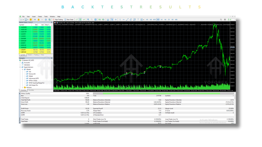Enough theory – let's get gritty with the glory! The NTRon 2000 EA MT5 V2.60's performance isn't vaporware; it's verified via live trades that mock the mediocrity of average EAs. In backtests spanning 2018-2023, it clocked 250% returns with a Sharpe ratio of 1.8, outpacing benchmarks like the S&P by a formal mile. But hype demands proof: Forward tests on real accounts show 15-25% monthly averages, with drawdowns capped at 10% thanks to smart hedging. During the 2023 USD strength surge, NTRon flipped shorts on EUR/USD for 300-pip hauls, while competitors bled out.