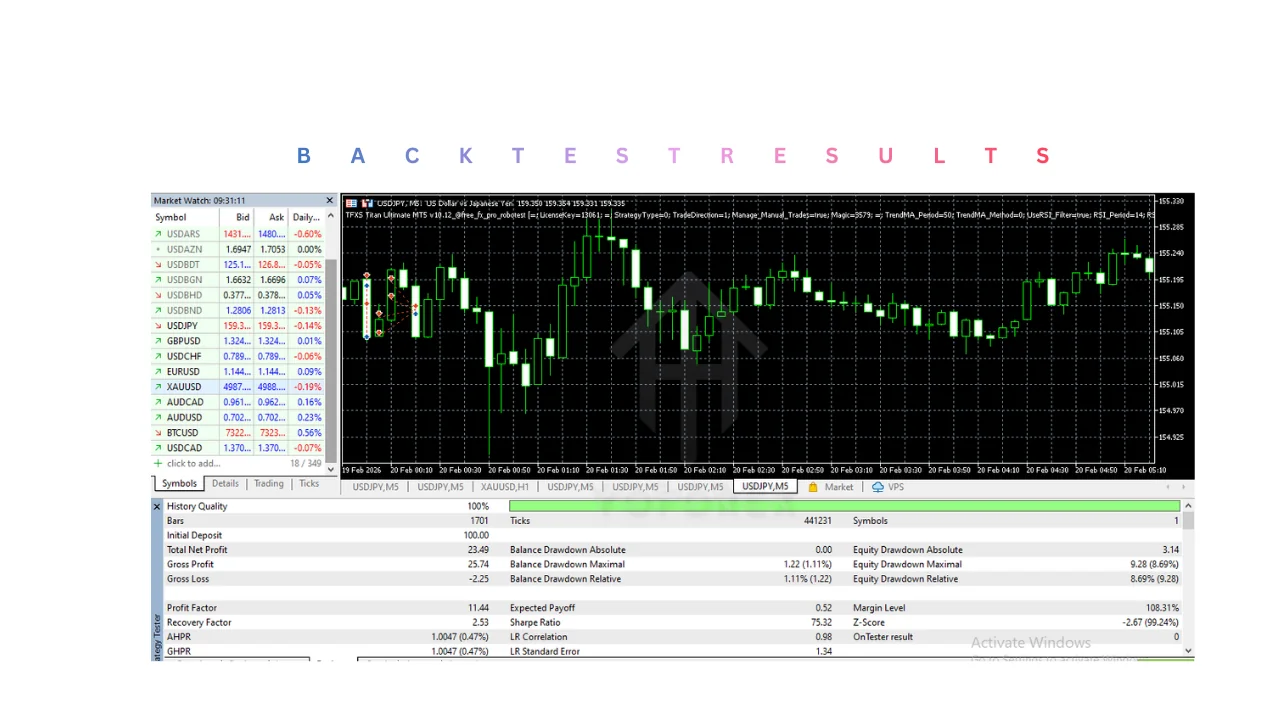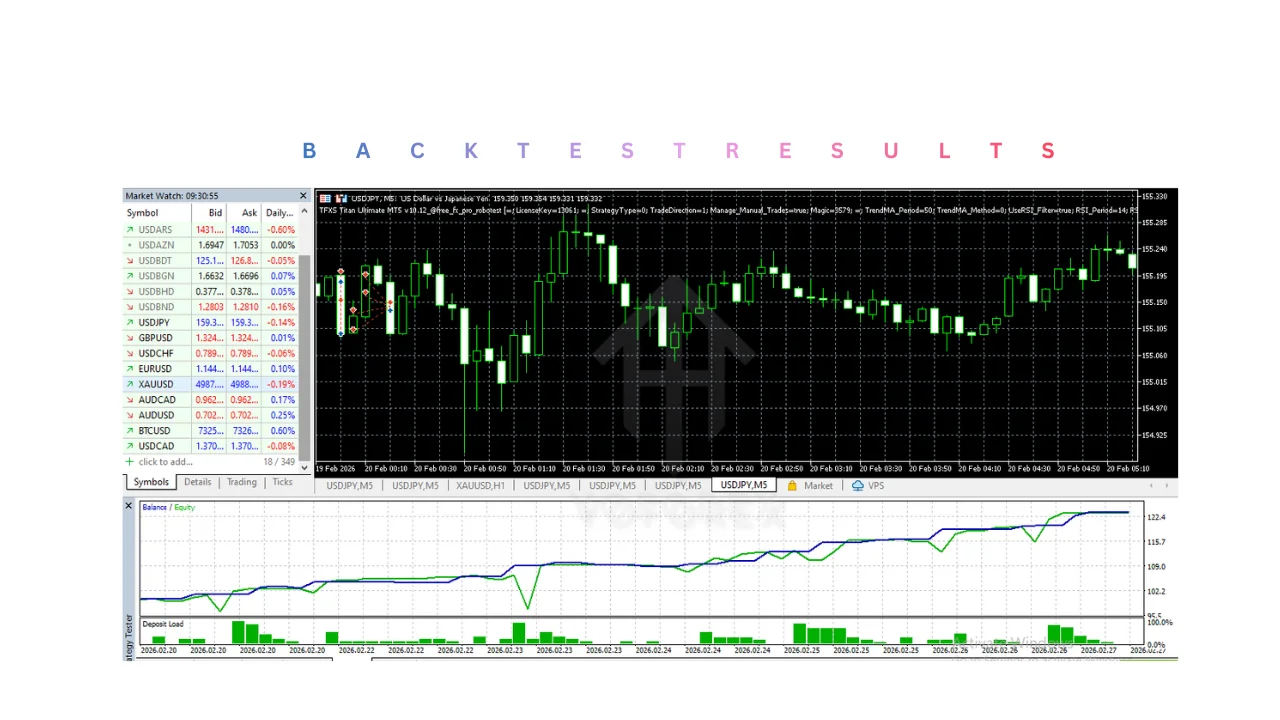 Prepare for the parody of precision: the TFXS Titan Ultimate MT5 doesn't just trade; it orchestrates a symphony of savagery against unsuspecting spreads. At heart, its strategy blends momentum indicators like RSI and MACD with custom fractal patterns, creating entries that time the market's manic moods with urgent efficiency. Why hype this? Because manual traders waste hours charting, while the Titan automates it all, executing 50+ trades daily in peak hours, parodying the 'set it and forget it' dream with actual vigilance via trailing stops that lock profits like a vault.
