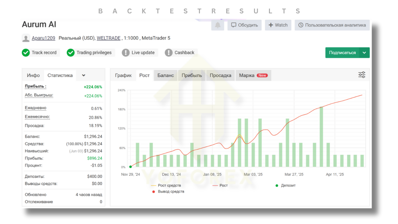 Aurum AI EA uses deep learning algorithms and AI to scan vast amounts of market data in real-time, providing traders with insights into potential profitable trade setups. The algorithm continuously adapts to market changes, optimizing performance with every trade.