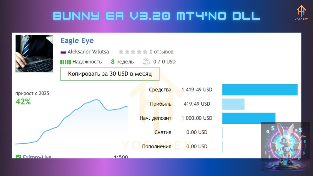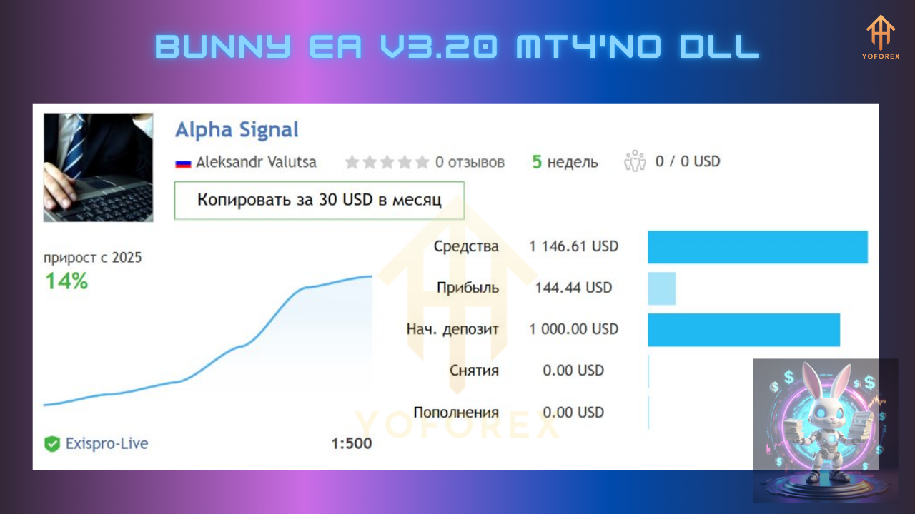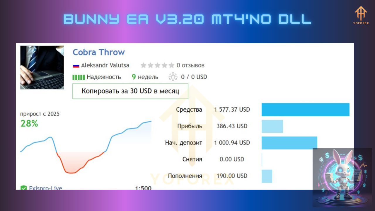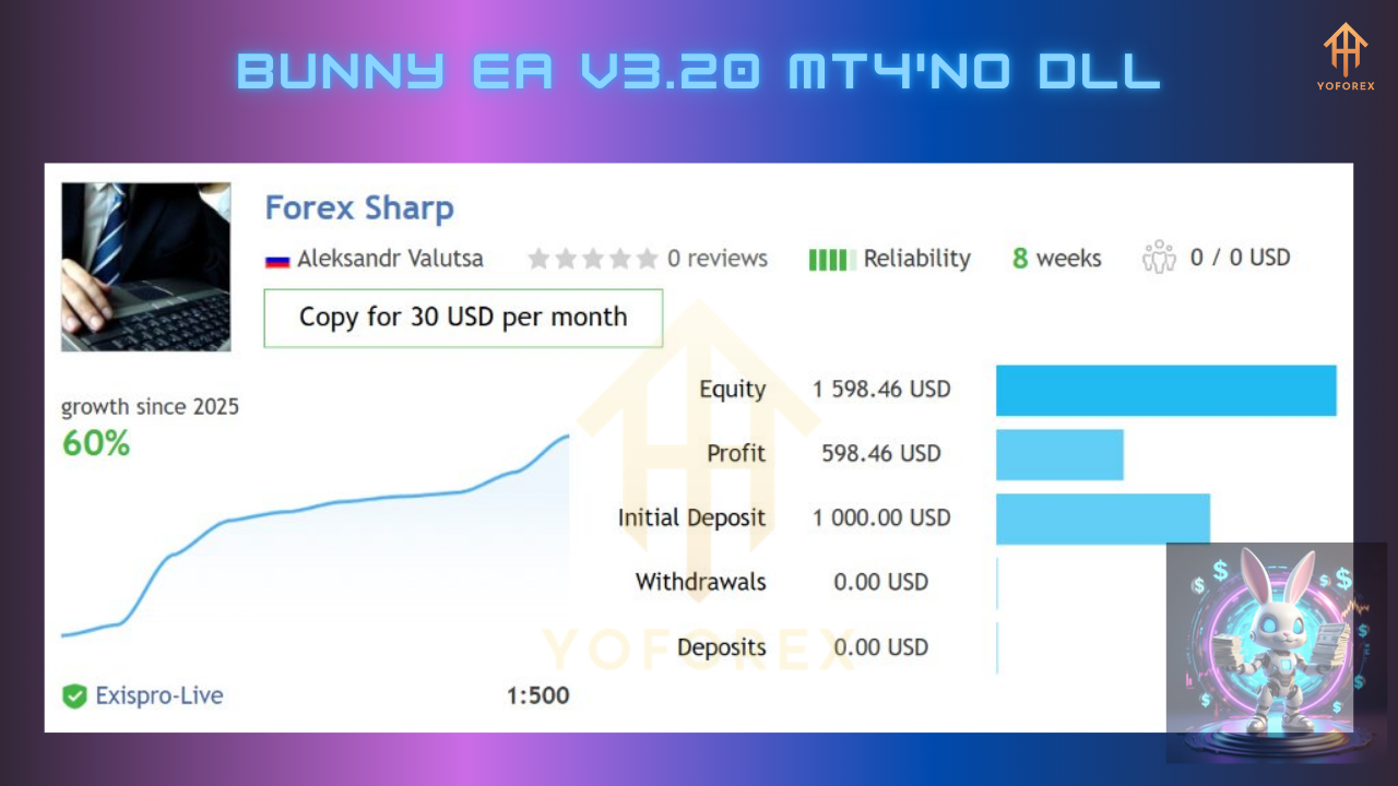 For best results, users are encouraged to start with a minimum account balance of $500. However, $1000 or more is ideal for smoother operation and better risk distribution. Bunny EA V3.20 works well with a range of currency pairs, especially those that maintain a stable trend or operate within consistent ranges.
