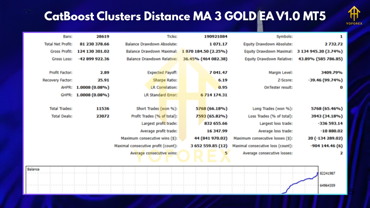 Grab your free copy of CatBoost Clusters Distance MA 3 GOLD EA V1.0 today from YoForexEA.com and let machine learning do the heavy lifting.