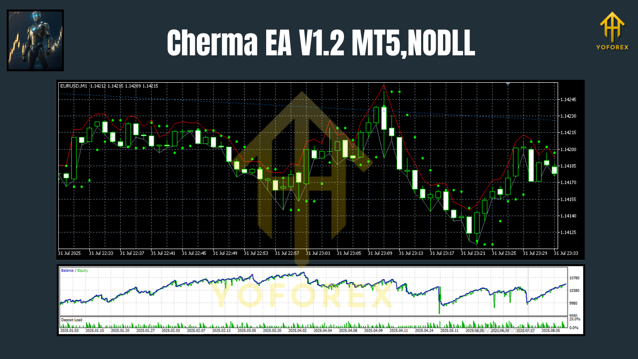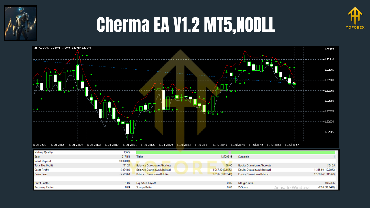 Cherma EA V1.2 MT5 thrives in micro-trends—those short bursts where price accelerates for a few candles before snapping back or flattening. The EA typically: