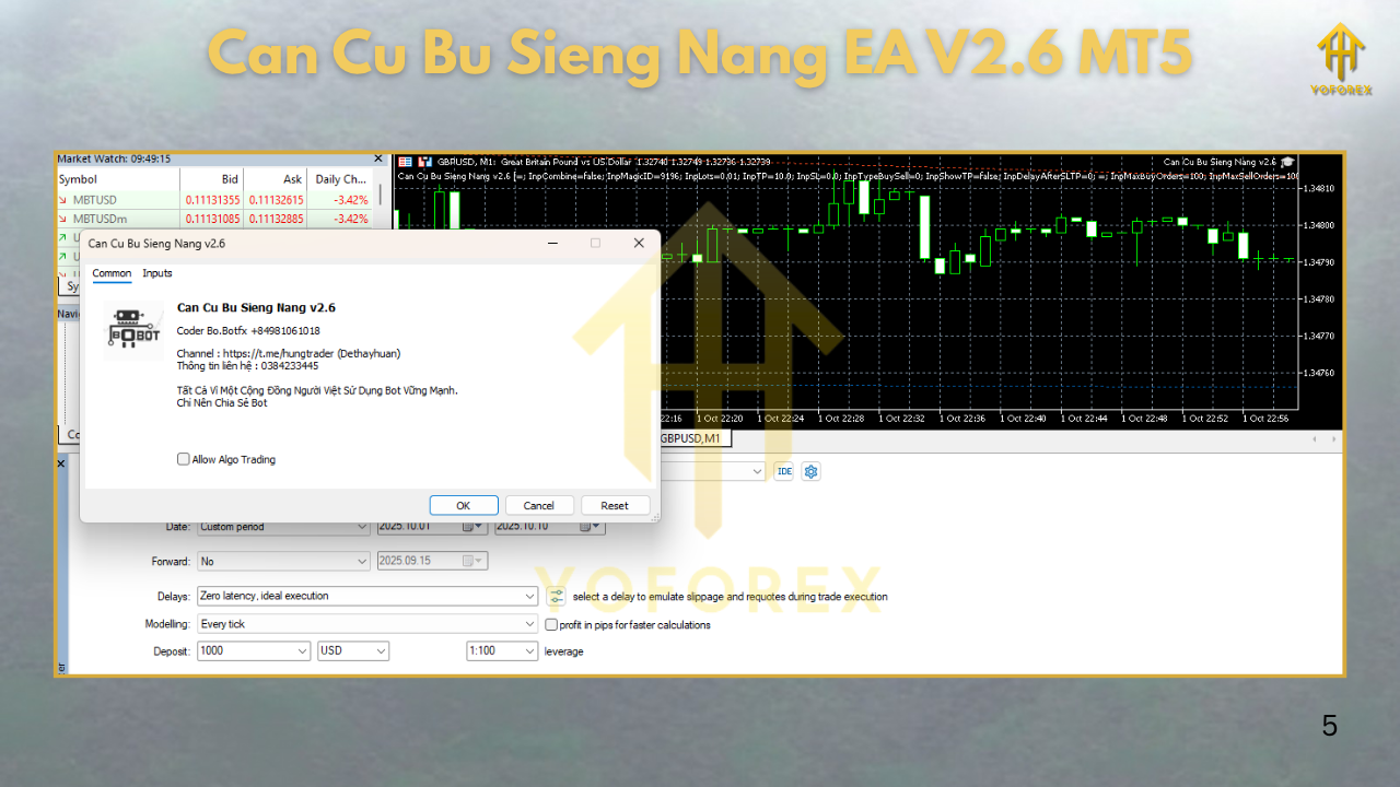 If you're tired of chasing trends or entering the market too late, Cu Bu Sieng Nang EA V2.6 MT5 offers you a smart alternative—one that enters the market with precision and timing. Developed by YoForex Premium, this Expert Advisor is designed to trade reversals and trend retracements with consistent profitability.