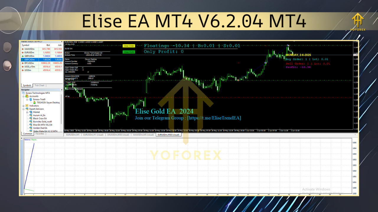 Elise EA MT4 V6.2.04 will feel like a breath of fresh air. It’s engineered for discipline: trend-first logic, ATR-aware risk, and confirmation entries so you’re not chasing every wiggle. When conditions are messy, Elise simply… skips. No martingale, no grid “recovery,” no drama—just steady, rules-driven automation you can audit, tweak, and actually trust.