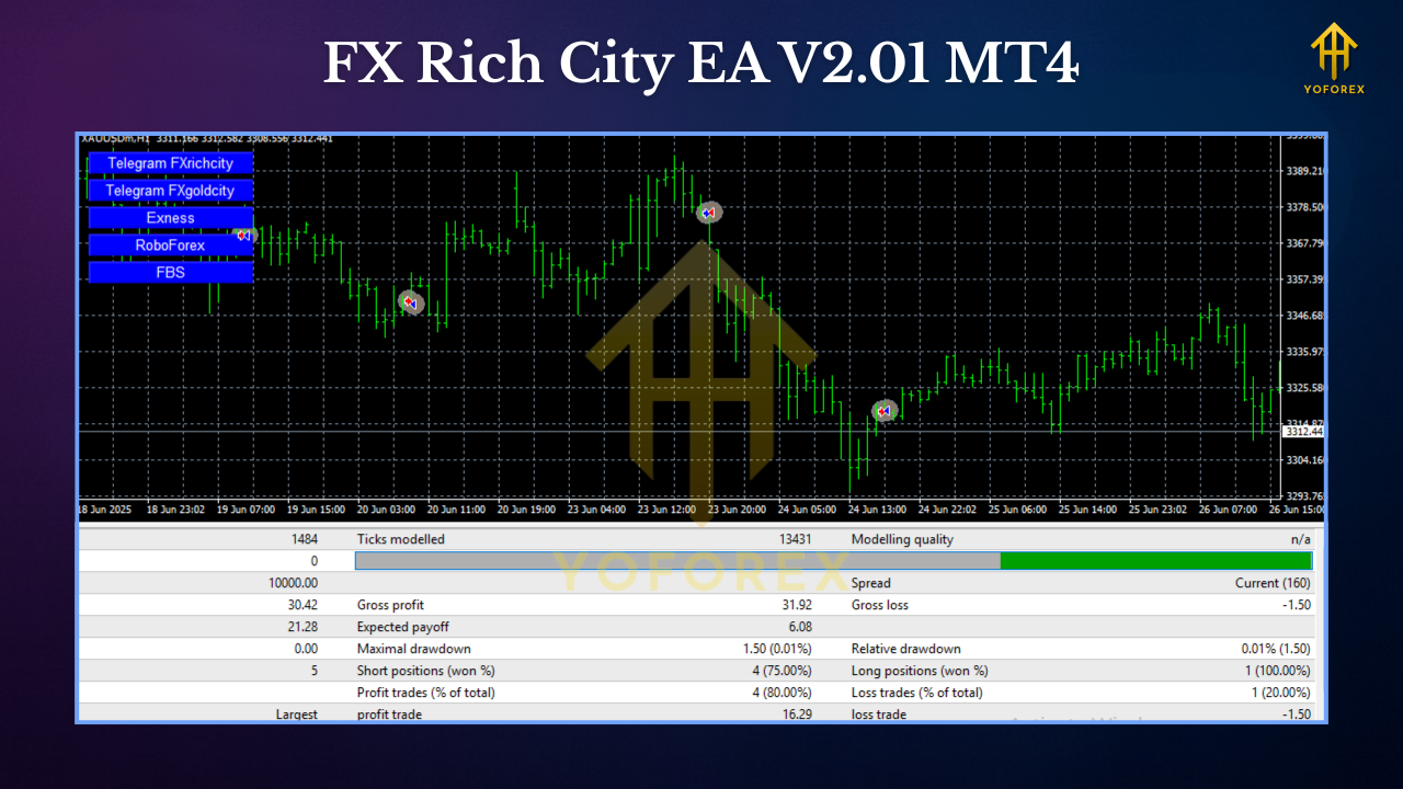 Instead of gambling on random signals, FX Rich City EA applies proven strategies backed by live and backtest results. Whether you’re aiming to grow a small account or pass a prop-firm challenge, this EA might be the edge you need.