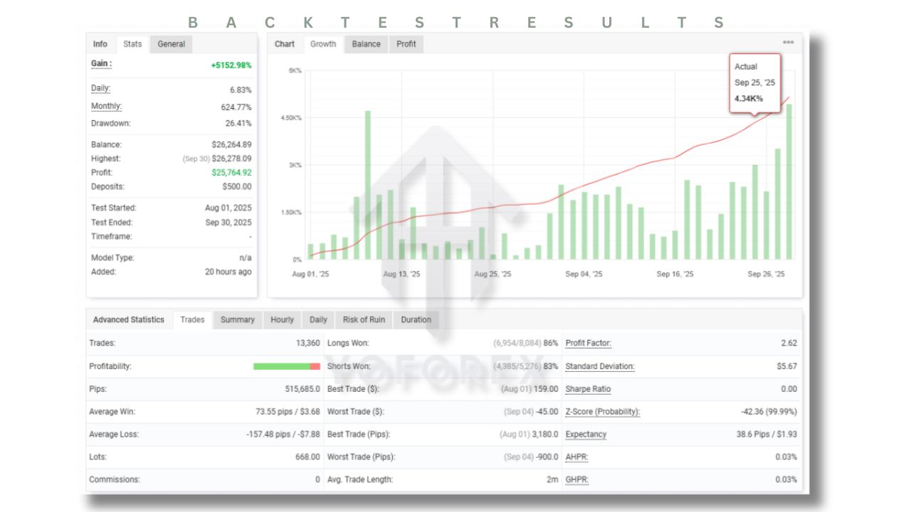 The EA’s ability to adapt to different volatility phases makes it useful for intraday gold trading and trend continuation setups.
