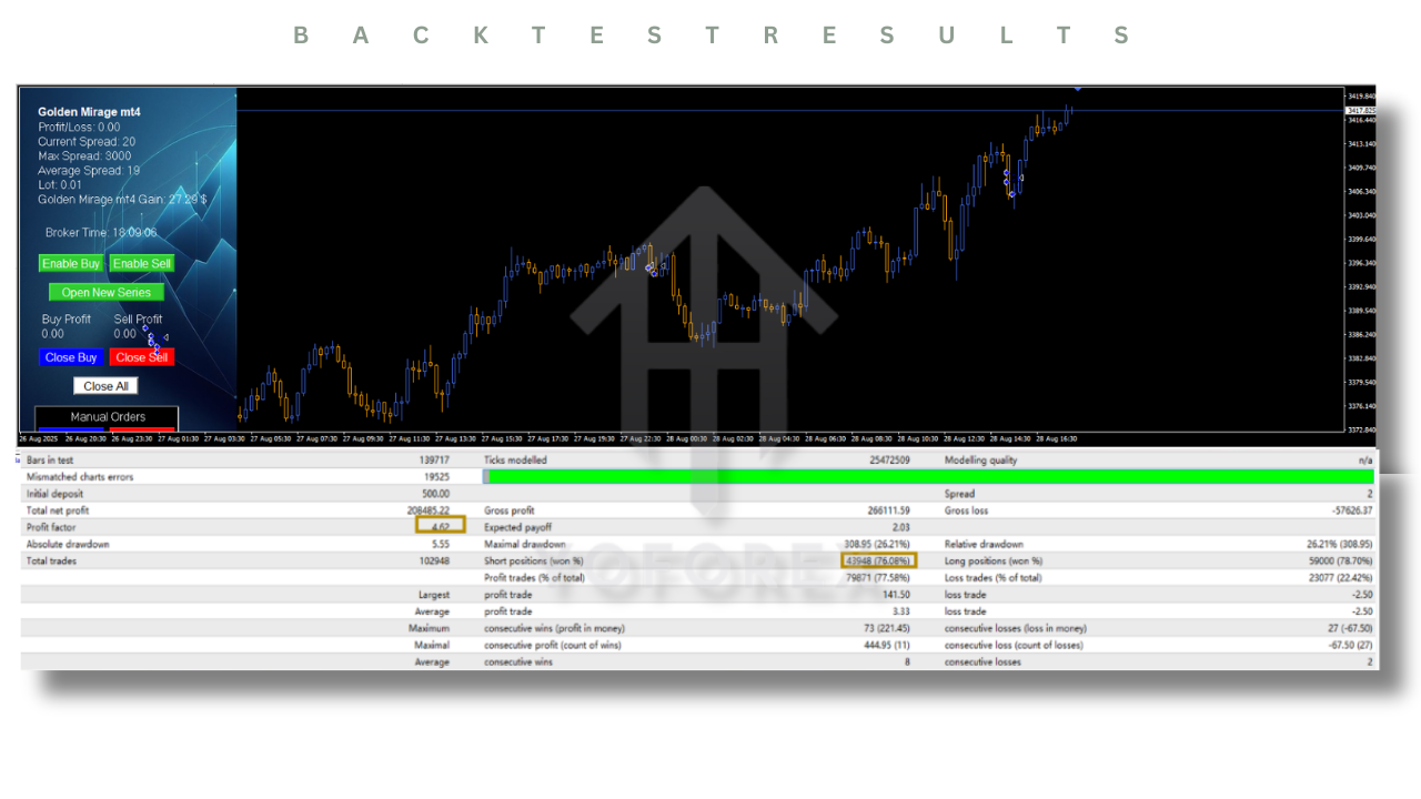 Golden Mirage EA V2.0 MT4 uses a trend-confirmation system that reads overall direction before entering any trade. This helps avoid counter-trend entries during strong gold momentum.