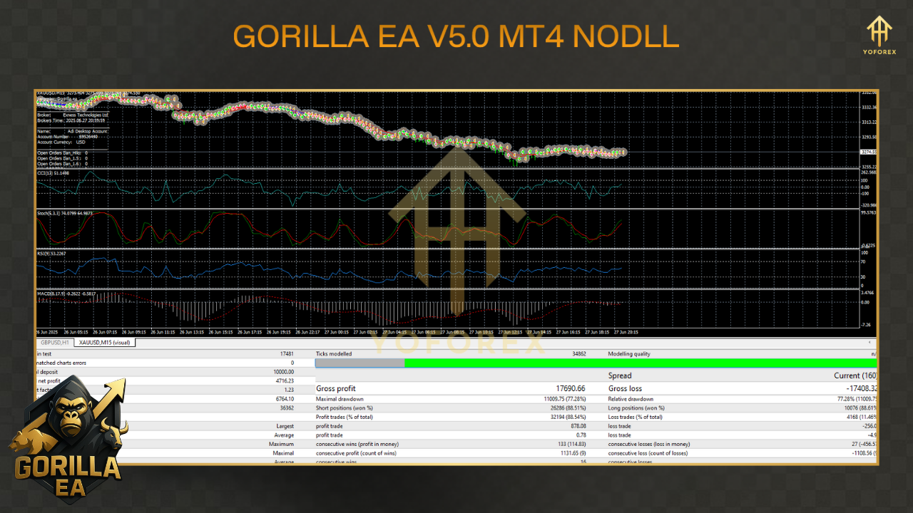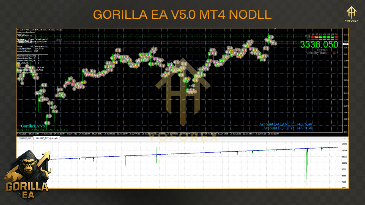 Gorilla EA V5 MT4 is an automated trading system built for the MetaTrader 4 platform. Inspired by the raw power and intelligence of its namesake, this EA uses a combination of momentum filters, volatility spikes, and dynamic stop-loss logic to scalp small but consistent profits across major currency pairs. Unlike bulky grid or martingale strategies, Gorilla EA keeps drawdowns tight and risk controls transparent—no hidden multipliers, no guesswork.