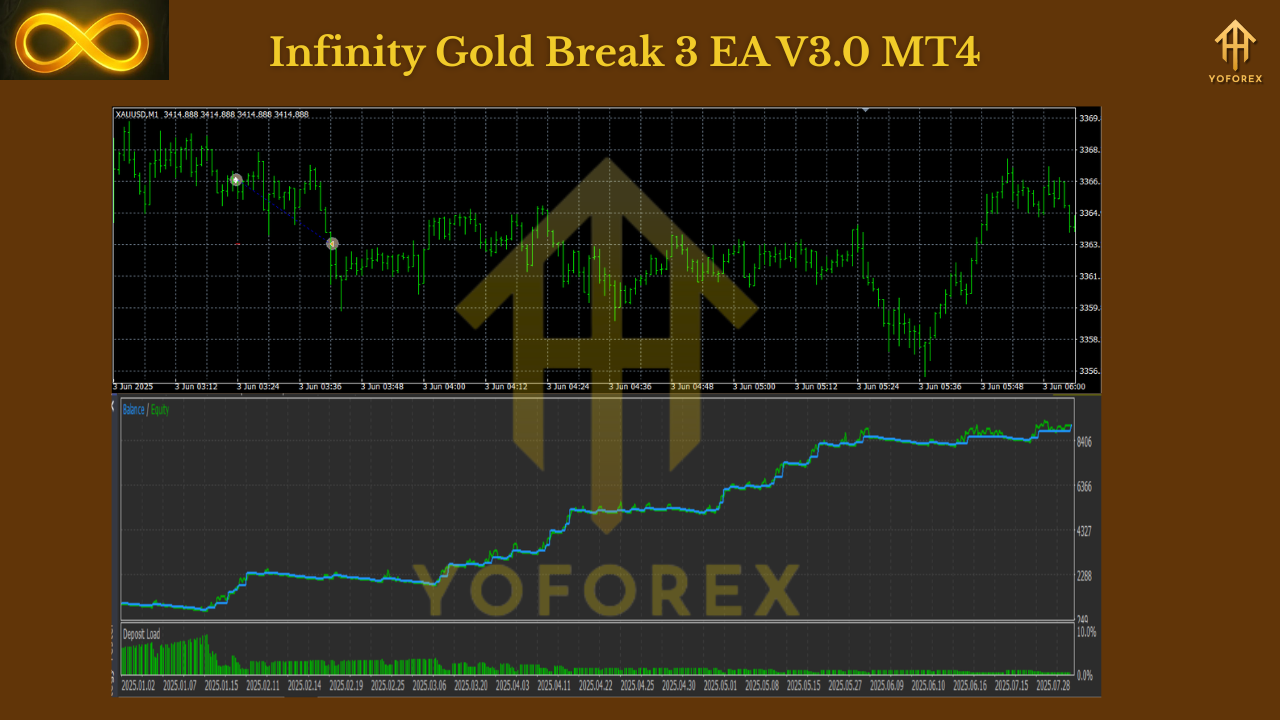 Infinity Gold Break 3 EA is a MetaTrader 4 expert advisor dedicated to breakout trading on gold and major forex pairs. It runs fully automated, making it ideal for both beginners and intermediate traders.