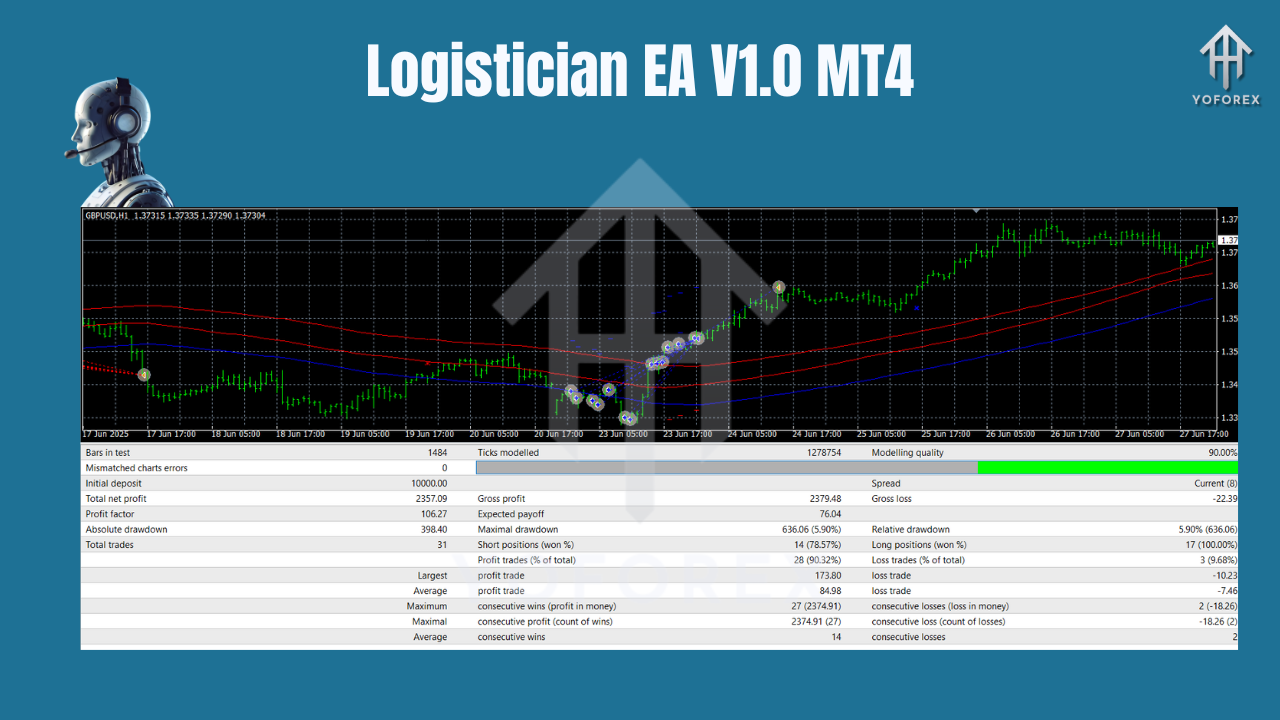 Logistician EA V1.0 MT4 brings statistical rigor, adaptive money management, and user-friendly design together in a powerful automated trading system. With its logistic regression–driven signal engine, customizable risk controls, and proven performance on the H1 timeframe, it empowers traders to pursue consistent profits without the stress of manual execution.