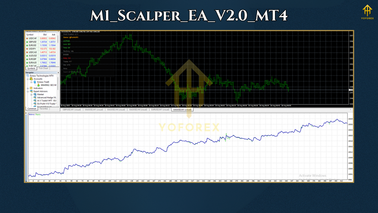 M1 Scalper EA V2 is an advanced high-frequency trading Expert Advisor designed for M1 timeframe on MetaTrader 4. It’s engineered for ultra-short scalping across major currency pairs and XAUUSD (gold).