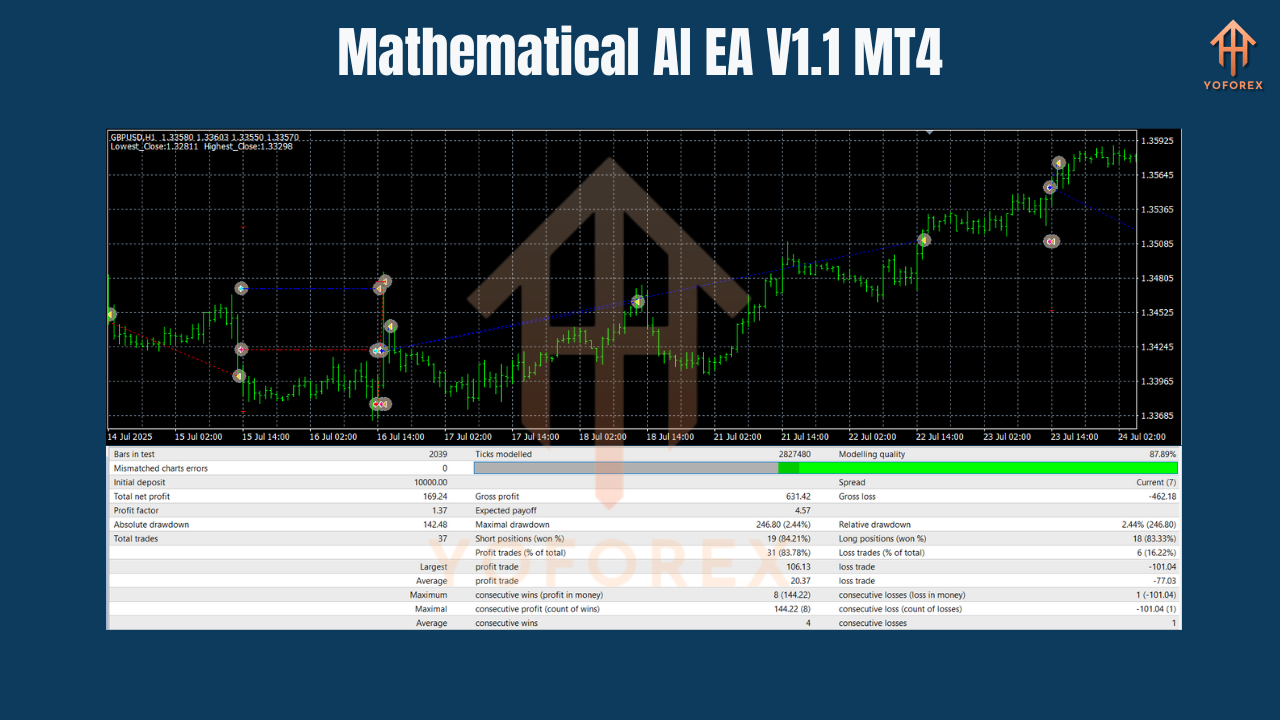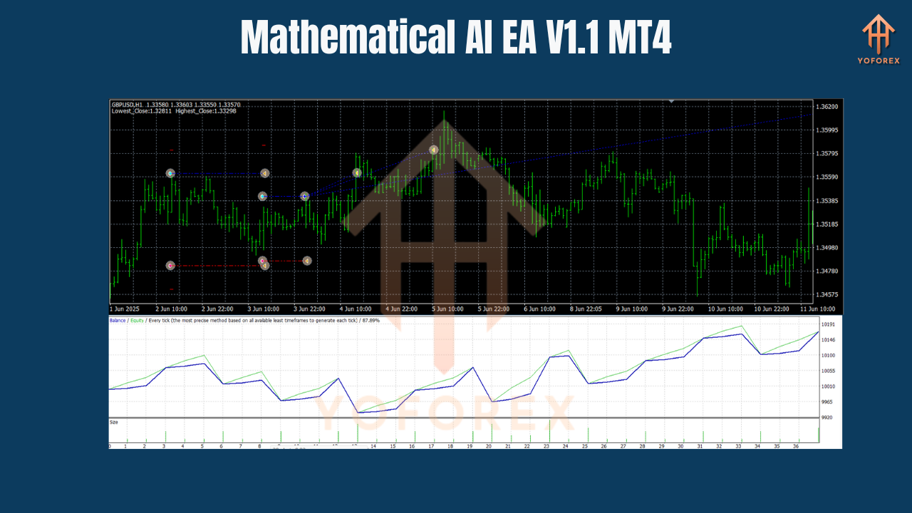 The Mathematical AI EA V1.1 MT4 is a unique forex robot that uses mathematical logic and dual order placement to trade both directions. With its range-trading adaptability, safe risk controls, and consistent daily activity, it provides a smart way to navigate unpredictable forex markets.