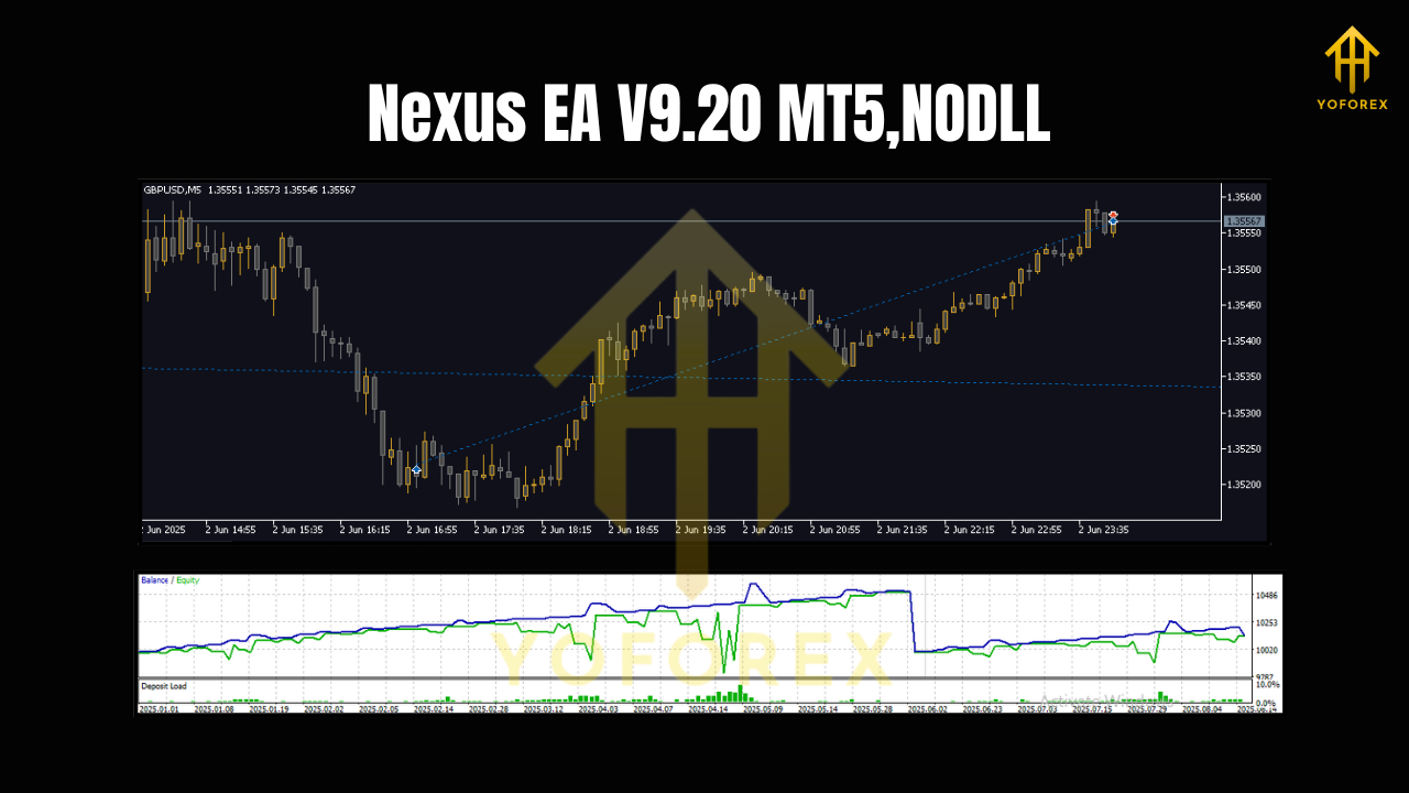 Nexus EA V9.20 is an automated trading robot for the MT5 platform. Unlike classic indicator-driven EAs, it relies on price-based math—think distance, velocity, dispersion, mean deviation—rather than “if RSI < 30 then buy.” That approach can help in ranging or mixed conditions, where indicator lag leads to whipsaws.