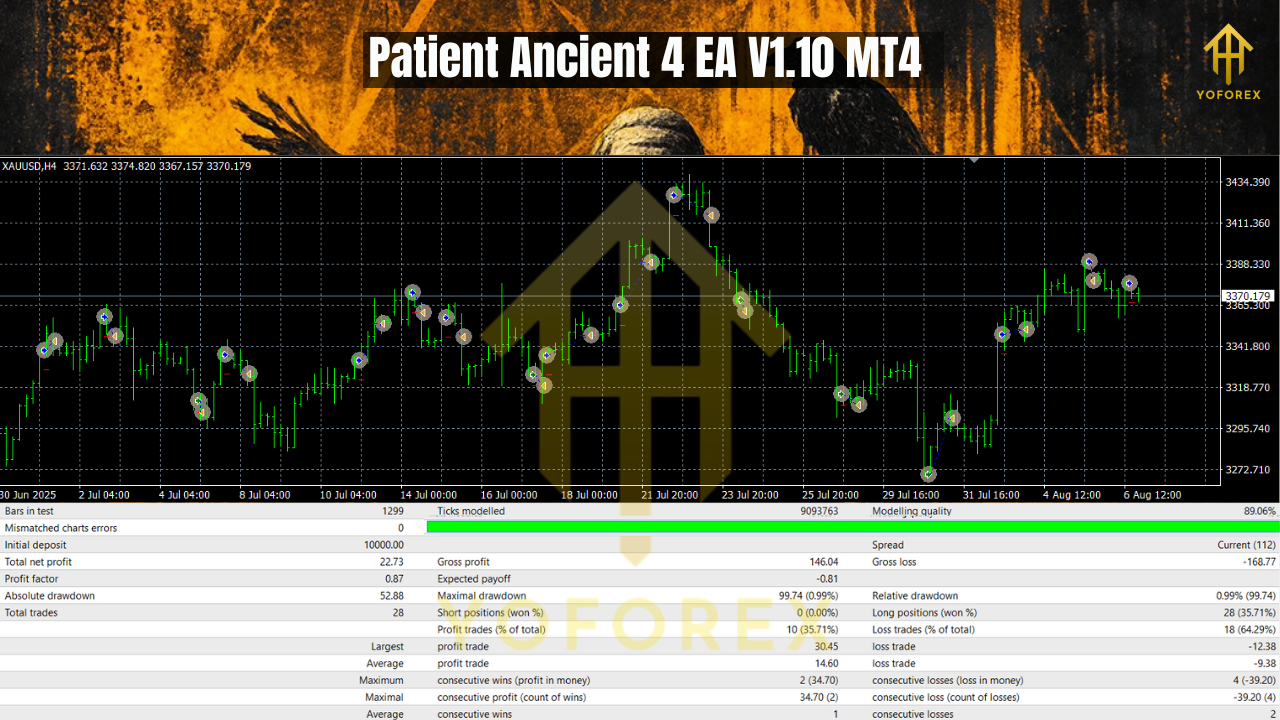 The Patient Ancient 4 EA V1.10 MT4 is an excellent choice for traders who prefer calm, reliable, H4-based trading. Its optimization for XAU/USD makes it a standout EA for gold, while still performing well on major currency pairs.