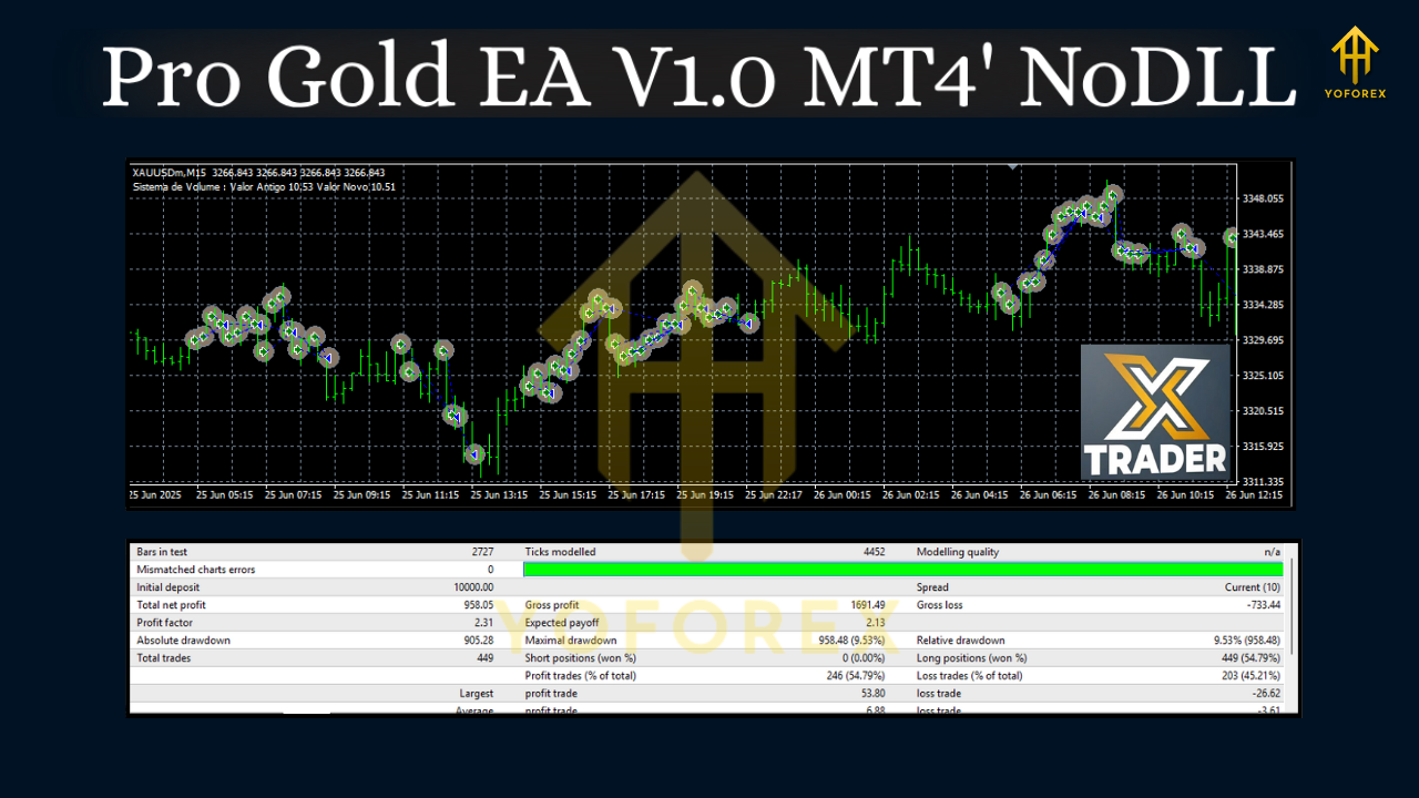 Let’s say gold whipsaws during a New York session. A typical robot might grab a few tiny wins, then eat a few ugly stops, and you end flat or worse. Pro Gold EA, on the other hand, might seed multiple small positions that reflect its directional bias; as price returns toward a median, it exits the entire basket at a net gain (or controlled loss), rather than cherry-picking which trade to close. That “all-for-one” exit removes a lot of noise and aligns PnL to the bigger picture.