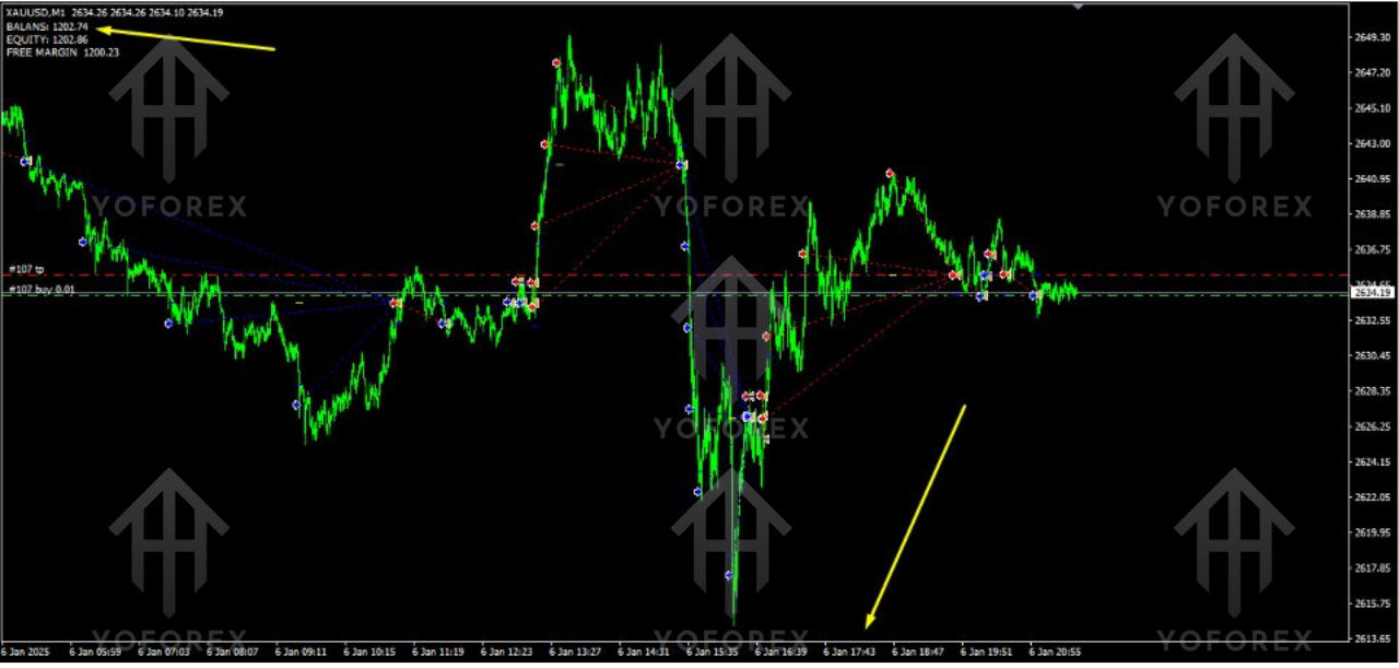 The EA also incorporates averaging, meaning that if the price moves against a trade, it will open additional positions in the opposite direction to bring the average entry price closer to the current market price. This strategy aims to recover from drawdowns and secure profits when the market reverses.