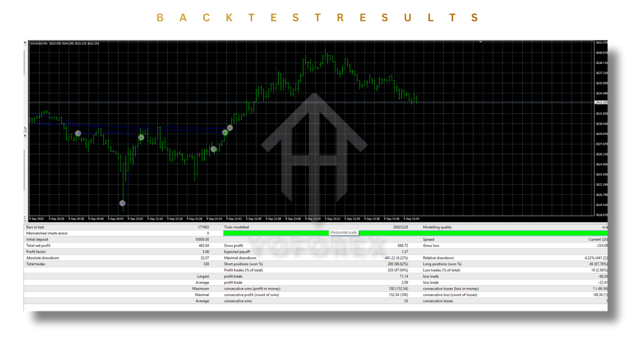 These backtesting results show that Quantum King EA V2.3 is highly effective at generating profits, even under less-than-ideal market conditions. The relatively low drawdown and strong win rate make it an ideal choice for traders looking for consistent returns.