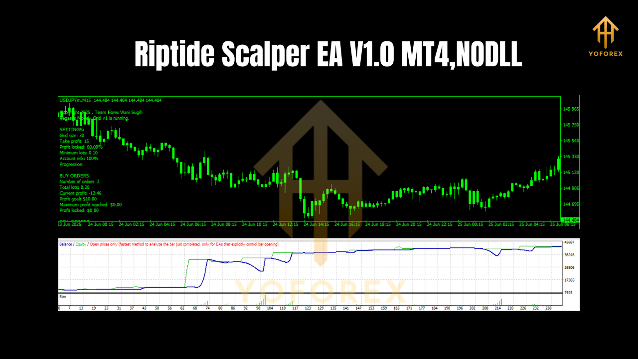 Riptide Scalper EA is designed to execute high-frequency trades, making it ideal for traders looking for quick profits from small price movements.