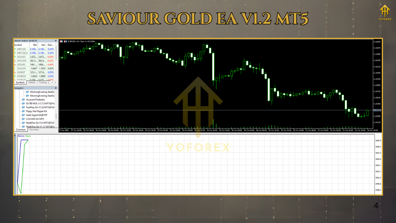 Tired of chasing gold entries, second-guessing exits, and watching price spike against you the moment you blink? You’re not alone. XAUUSD is a beast—volatile, emotional, and unforgiving if you’re late by even a few seconds. Saviour Gold EA V1.2 (MT5) aims to fix that by automating the heavy lifting: spotting high-probability zones, timing entries with discipline, and managing risk with consistency. The promise isn’t magic; it’s method. With version 1.2, the EA focuses on tighter risk controls, cleaner execution on MT5, and smarter filters so you can spend less time glued to charts and more time letting the algorithm work for you.
