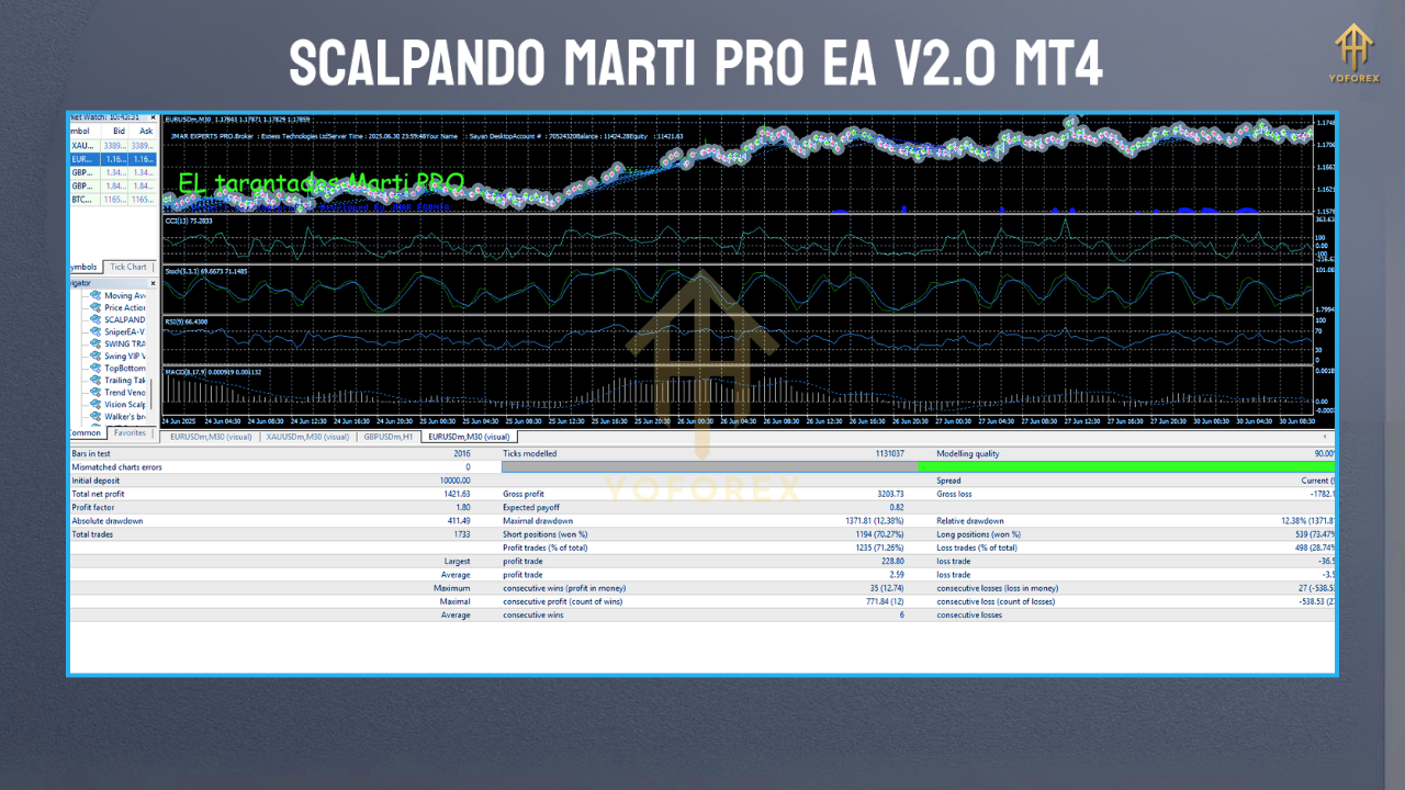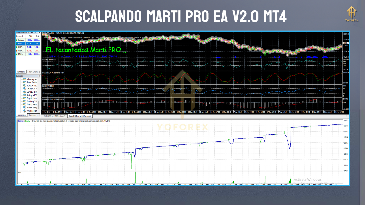 SCALPANDO Marti Pro EA is a fully automated MT4 Expert Advisor that combines high-frequency scalping logic with a controlled martingale system for maximizing profitability in short timeframes.