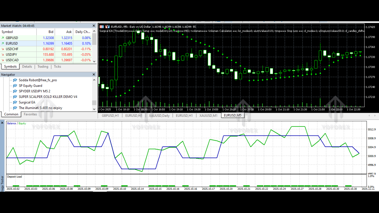 At its core, Surgical EA V2.0 is a high-efficiency Expert Advisor designed exclusively for the MetaTrader 5 platform. It focuses on low-latency scalping, backed with a swing-scalp hybrid model for stability when markets go quiet.