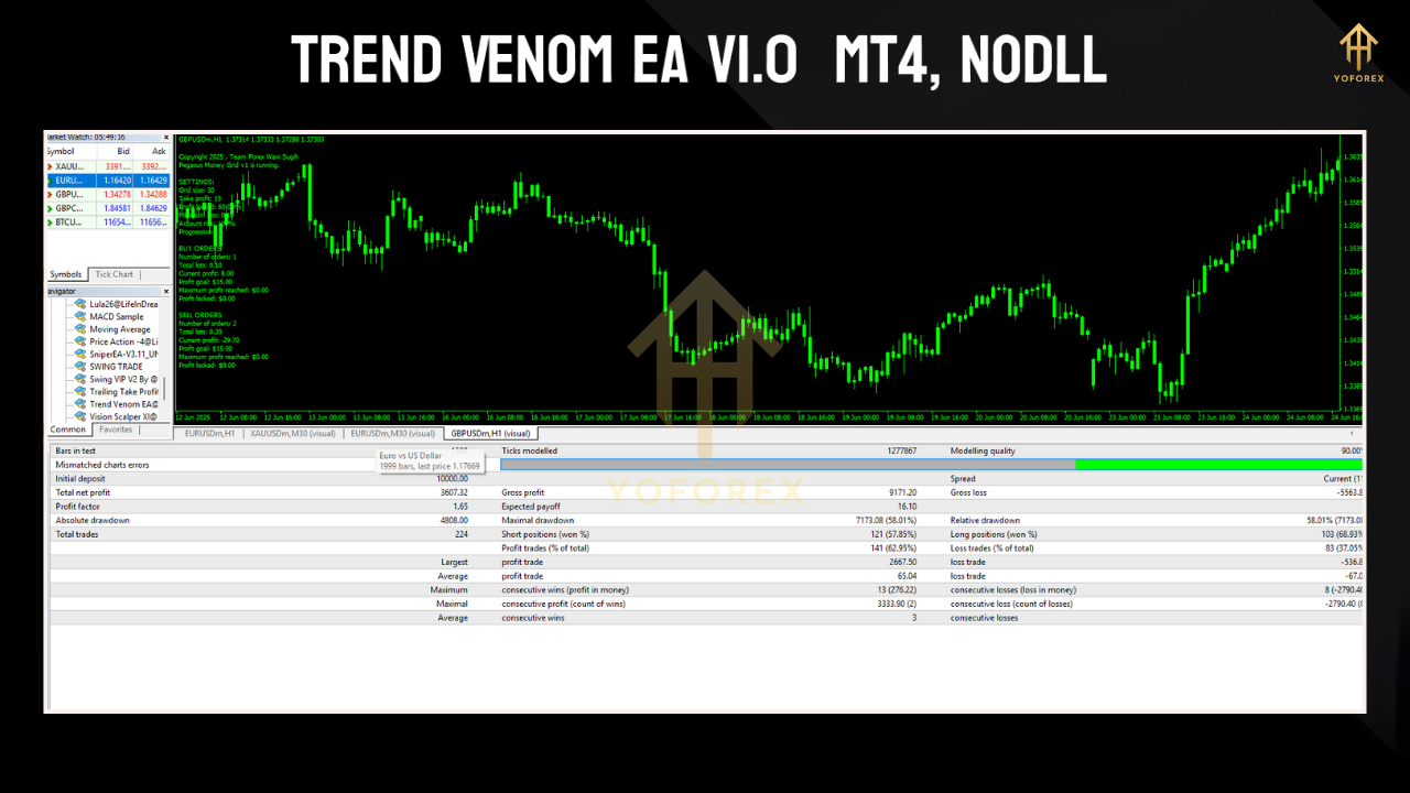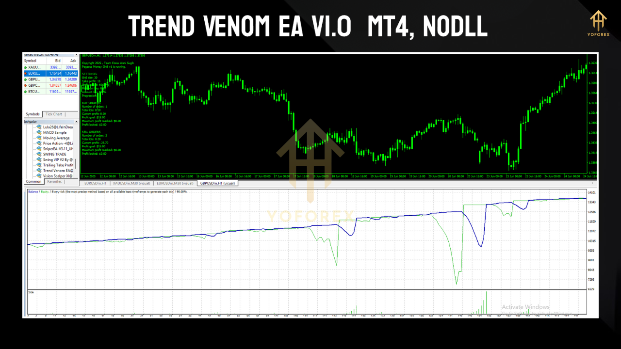 Trend Venom EA is an automated trading robot for MT4 designed to identify and ride strong trends across forex, gold, and indices. Using a mix of price action filters, volatility measures, and trend confirmation logic, it enters trades at the optimal moment and rides them until the trend shows signs of weakness.